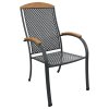 Křesla MONACO jsou trůnem mezi zahradními křesly, jsou elegantní, praktická a díky speciální povrchové úpravě lehce udržovatelná a odolná proti mechanickým poškozením, zároveň ale na dotek hladká a příjemná. Díky svému vznešeně modernímu designu kombinujícímu kovové a dřevěné prvky se hodí na každou zahradu nebo balkón, ke kulatému, ale i hranatému stolu. Díky stohovatelnosti křesel je nábytek lehce skladný a díky odlehčené konstrukci i lehký na přenos.